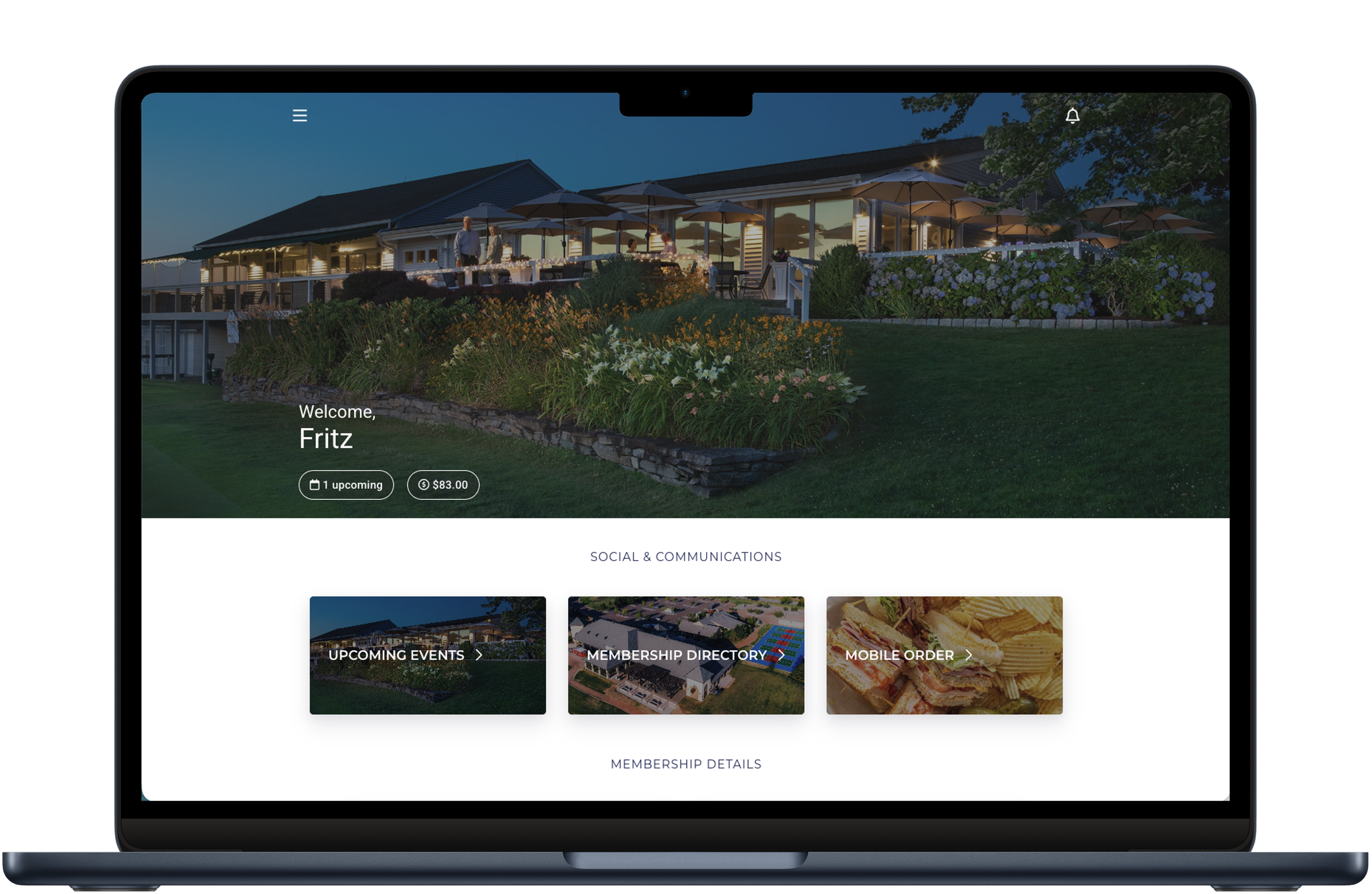 A connected member experience—events, dining, reservations, and communication—all accessible through a single, intuitive interface.