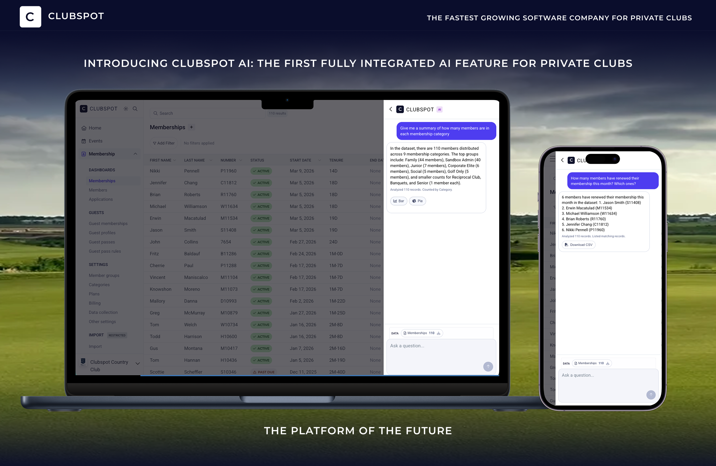 The first of its kind in the private club software industry: Clubspot AI.