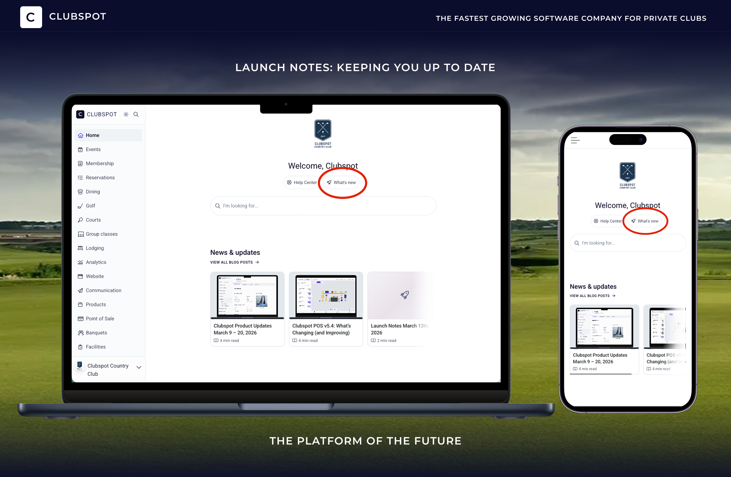 Clubspot keeps you up to date on product updates weekly in our launch notes, which club administrators can access in their dashboards.