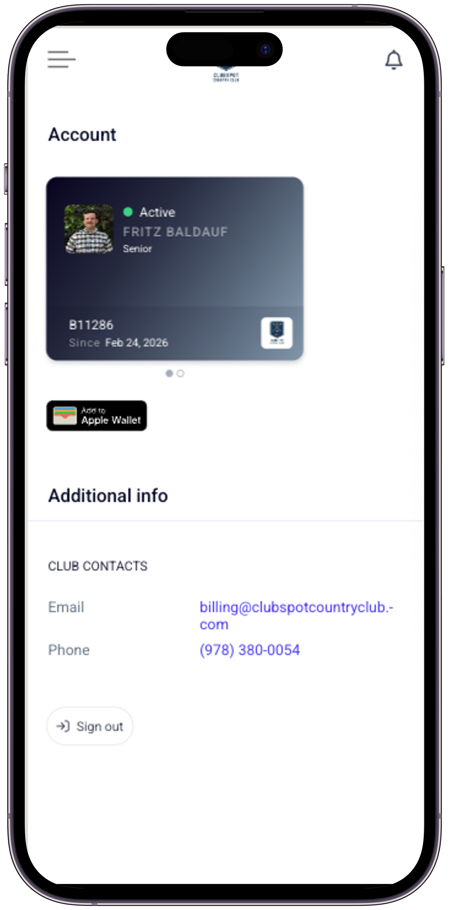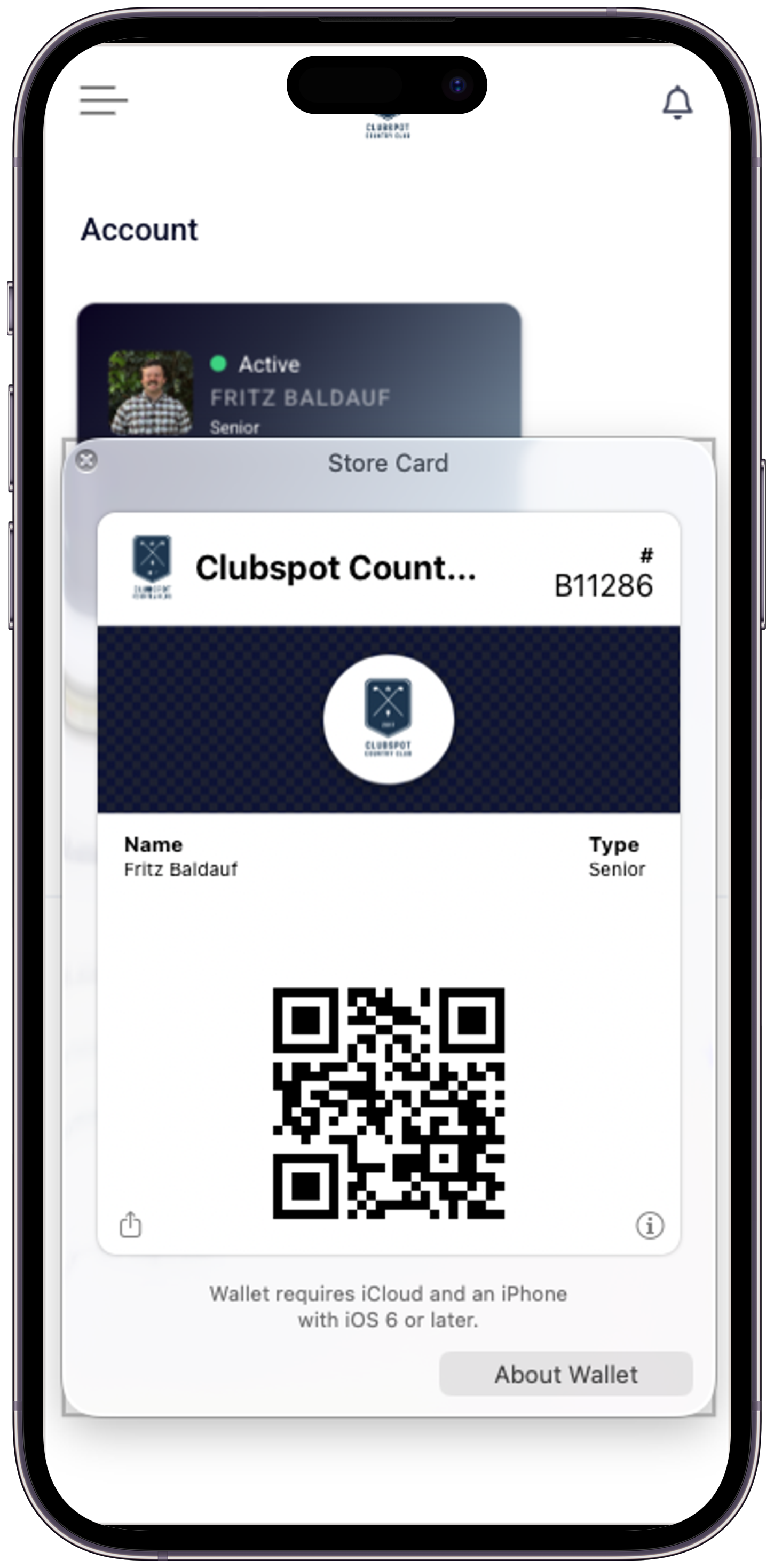 Clubspot allows members to add their digital card to Apple Wallet, making identification and access available anytime without opening the app.