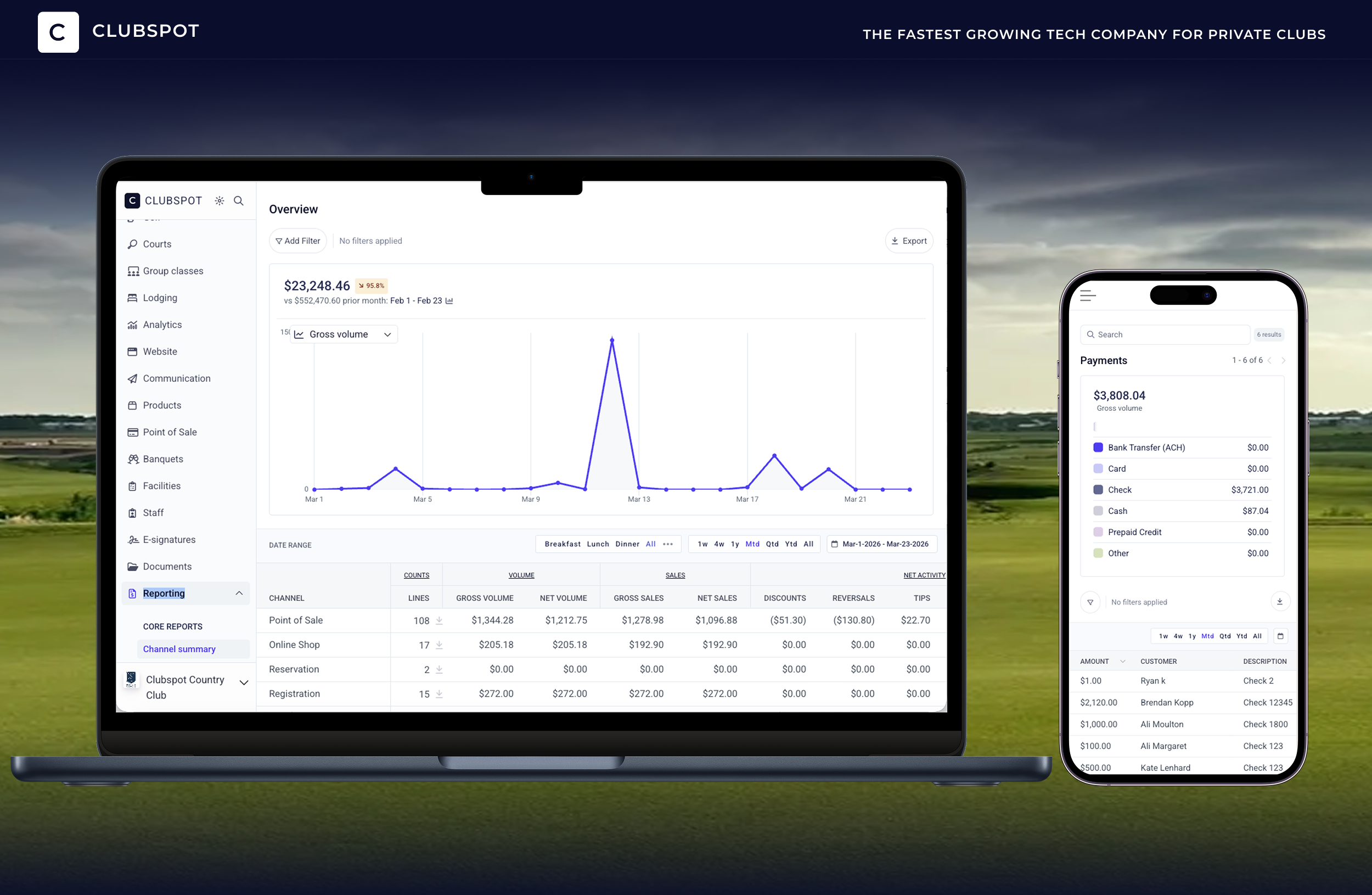 Because of this, many country clubs are now moving toward unified club management platforms that bring these functions together in one system. A modern platform can combine membership management, POS, billing, event registration, reservations, reporting, and member communications in a single place. Instead of switching between multiple programs throughout the day, staff can access everything they need from one dashboard while members interact with the club through a single website or mobile app.