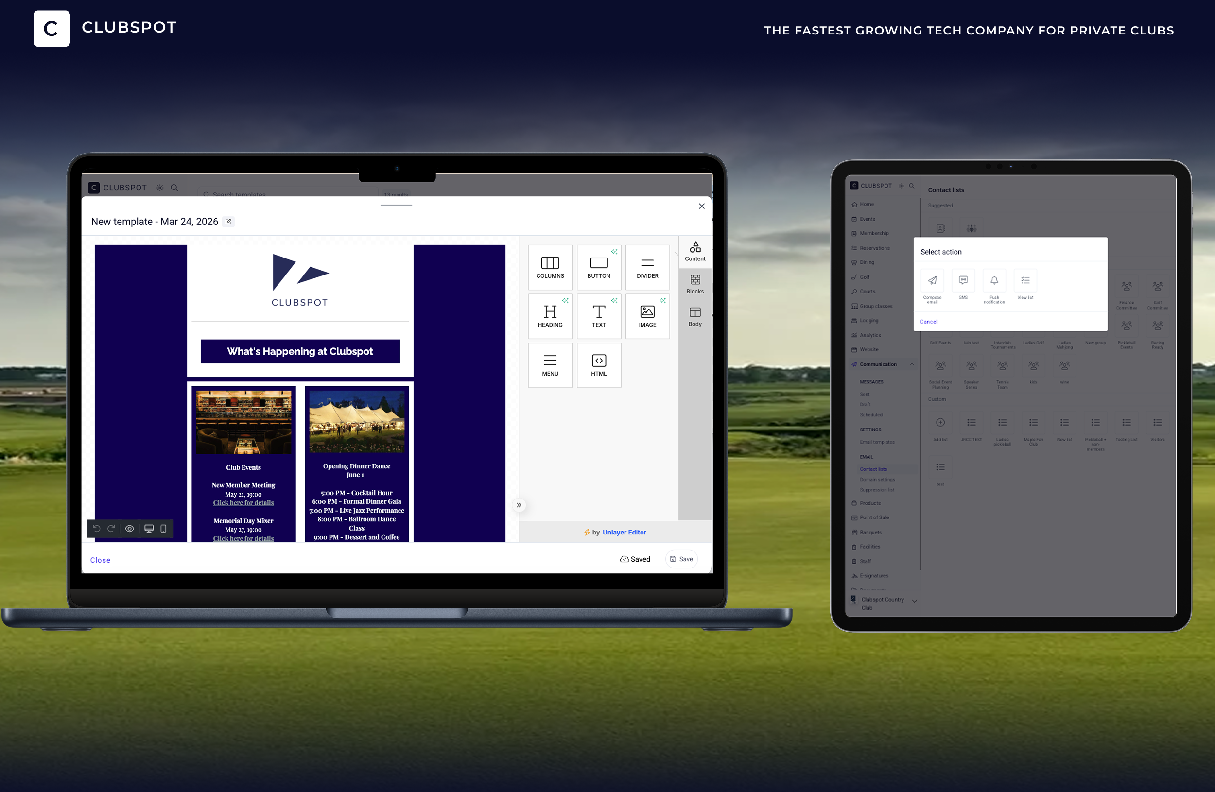 Create, manage, and send club communications from a single platform—eliminating the need for separate email, event, and messaging tools.